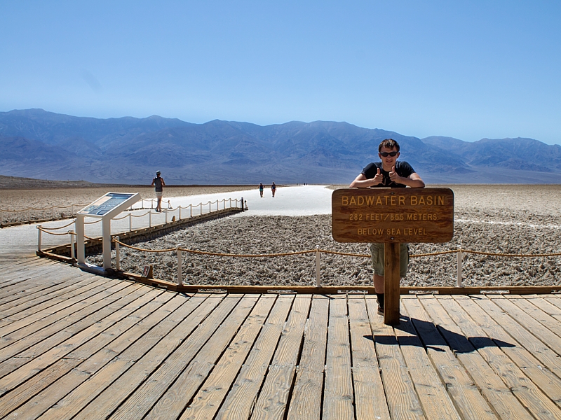 Death Vally NP kent een aantal extreme en prachtige bezienswaardigheden op geologisch vlak. Helemaal in het zuiden van het park ligt Badwater, een zoutmeertje. Dit is het laagste punt van de VS. Het ligt 86 m onder de zeespiegel. Vlakbij Badwater lig Devils Golf Course. Een zoutvlakte die niet vlak is zoals andere zoutvlakten in het park, maar een vlakte waar door erosie tal van ruige zoutformaties zijn ontstaan. Bij Zabriskie point zijn prachtige rotsformaties te zien. Anders maar ook heel mooi is The Artitsts palette (te bereiken via the Artists Drive (geen campers). Rotsen die door de metalen prachtig zijn gekleurd. Iets ten zuiden van de Artists Drive ligt Natural Bridge Canyon met een natuurlijke stenen brug 15 minuten lopen vanaf de parkeerplaats. Helemaal in het noorden ligt de beroemde Racetrack. Een meestal droog meer waar de rotsen (sailing stones), gezien de sporen die ze hebben achtergelaten, zelfstandig over de bodem lijken te schuiven. Het beeld wordt veroorzaakt doordat heel soms de rotsen met regenwater meespoelen het meer in.
