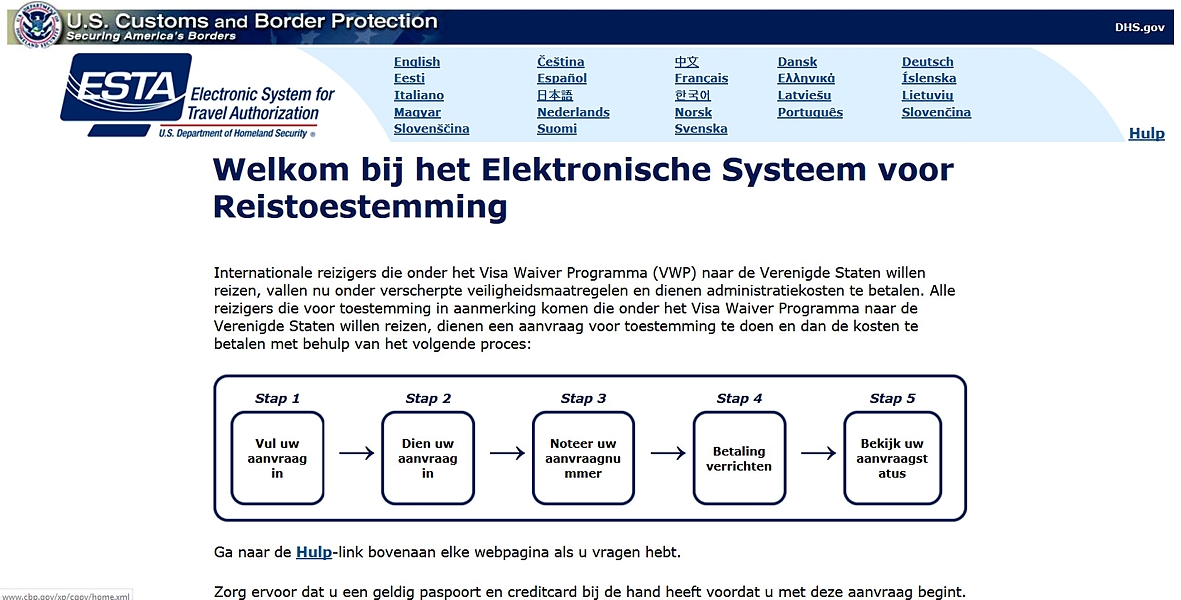 Via Esta je bezoek aan de VS aanmelden is verplicht.