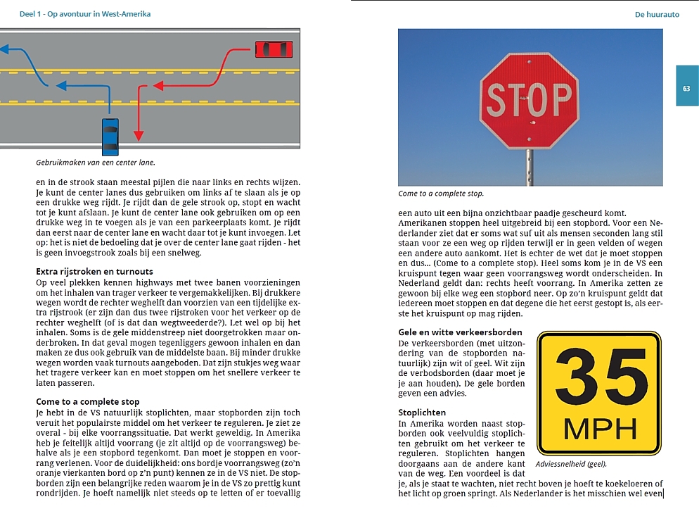 In het boek staan veel tips, bijv. hoe je je in het Amerikaanse verkeer moet gedragen (in dit geval hoe je center lanes moet gebruiken).