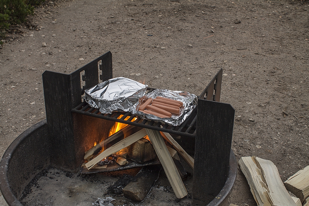 uit eten gaan en zelf koken op een kampvuur, over winkelen, geld,
