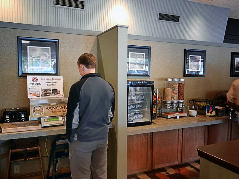Ontbijtbuffet in het Red Lion Hotel in Seattle.